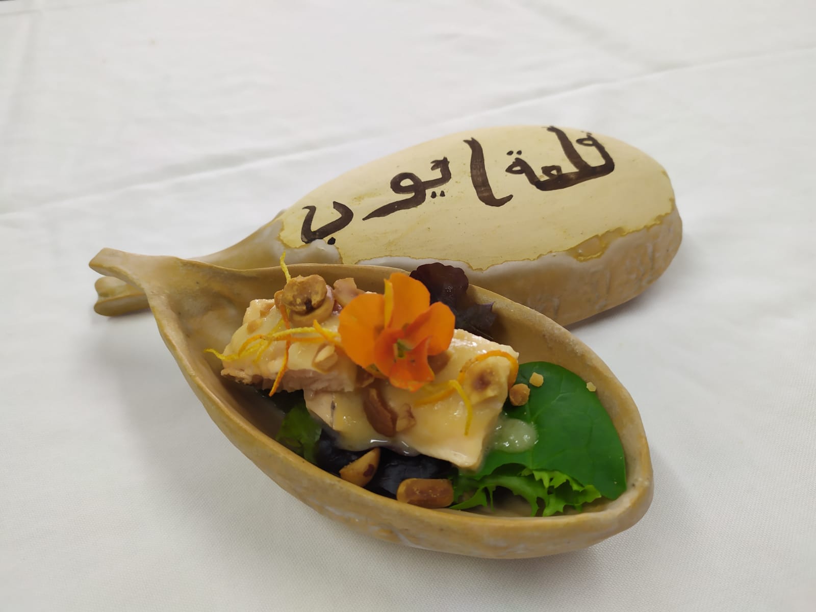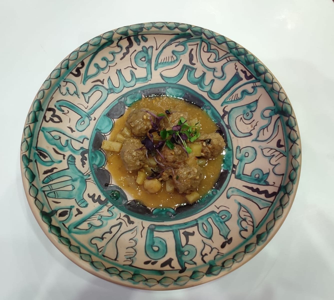 La experiencia culinaria se extendió a la realización, de forma exclusiva para su servicio, de más de 200 piezas de cerámica realizadas por el artesano de Sediles, Néstor Pablo, que se inspiró en relieves andalusíes y en calados almohades, además de decorar algunas piezas con la epigrafía de “Calatayud” en el anverso de ellas.
