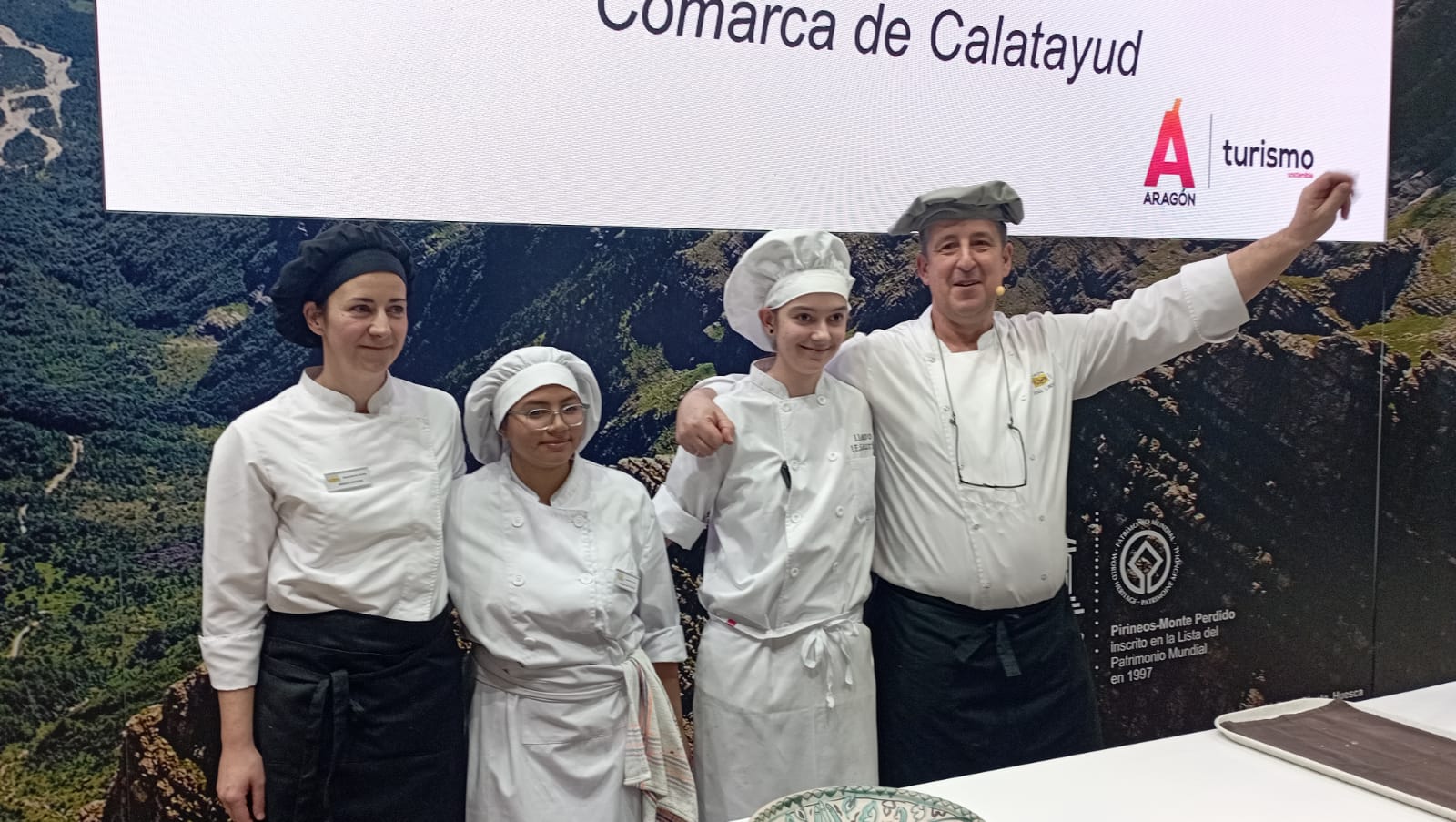 Profesores y alumnos del IES Zaurín de Ateca protagonizaron una jornada en la Feria Internacional de Turismo (FITUR) con la cocina andalusí como protagonista. En la cita se pudo degustar un menú elaborado para la ocasión como presentación del proyecto ¡Vive la experiencia andalusí! impulsado desde la Comarca Comunidad de Calatayud.