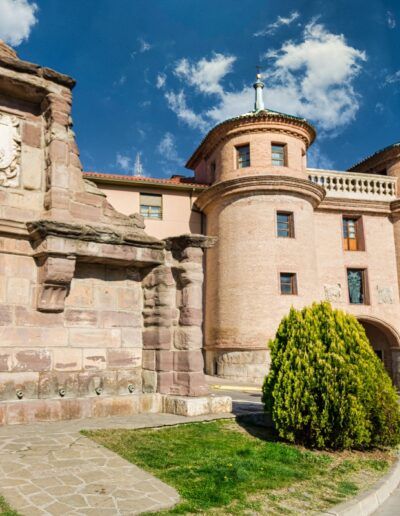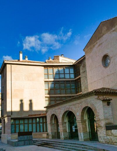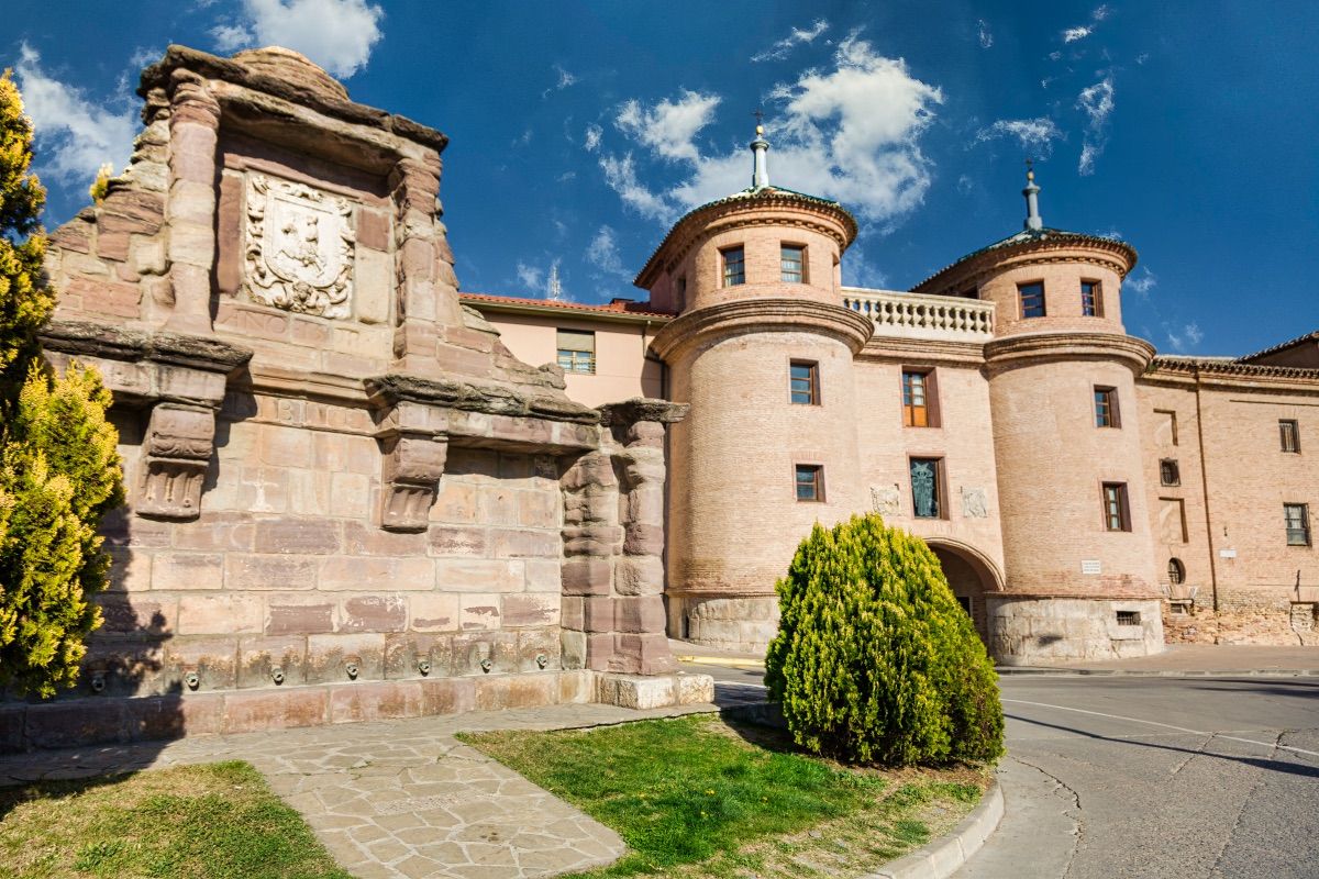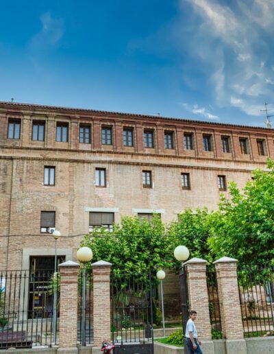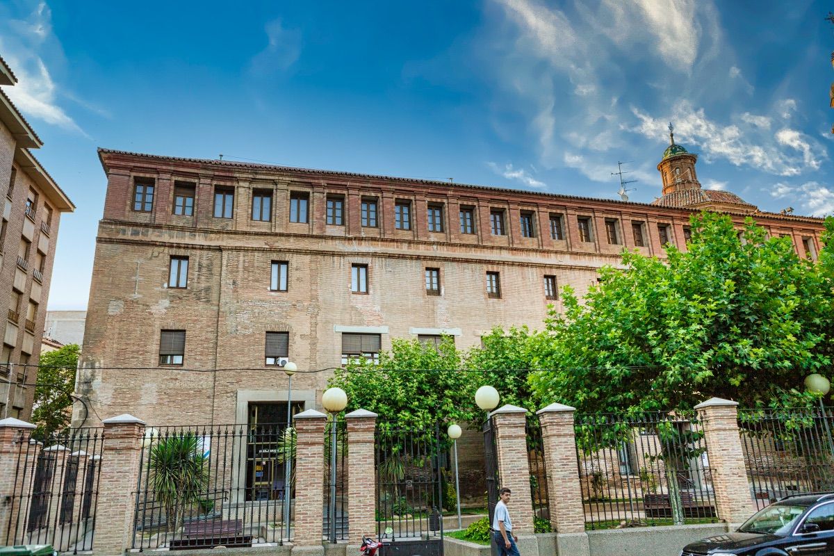 A finales del siglo XVI la Compañía de Jesús se instaló en la ciudad con la intención de fundar un colegio en el que desarrollar su tarea docente y apostólica. Entre los siglos XVII y XVIII, aquella pequeña fundación se había convertido en un monumental conjunto de edificios, compuesto principalmente por la iglesia, puesta bajo la advocación de la Virgen del Pilar, el convento y el seminario de nobles, por el que pasaron personalidades como Baltasar Gracián o Nicolás y Leandro Fernández de Moratín.