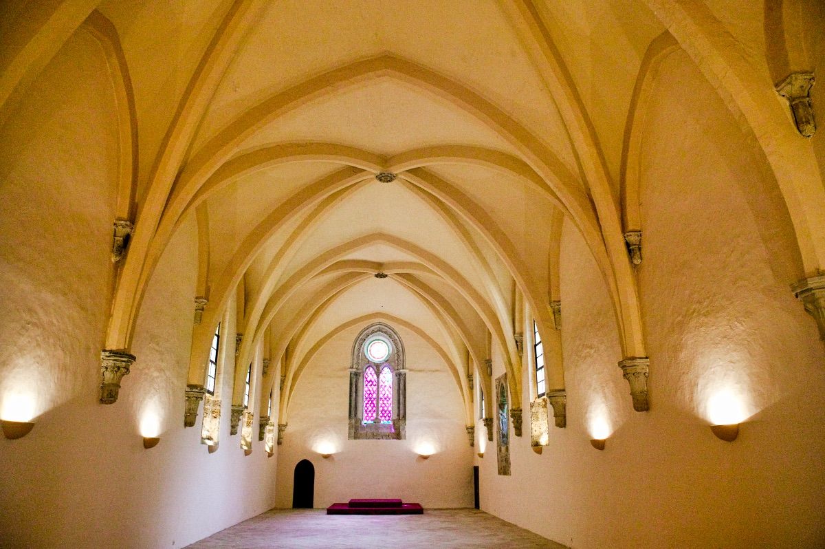 El antiguo palacio abacial, rehecho en el siglo XVII, está hoy convertido en hospedería y conserva, además de su característica fachada con dos niveles de columnas, una escalera monumental abovedada, con dos ramales.