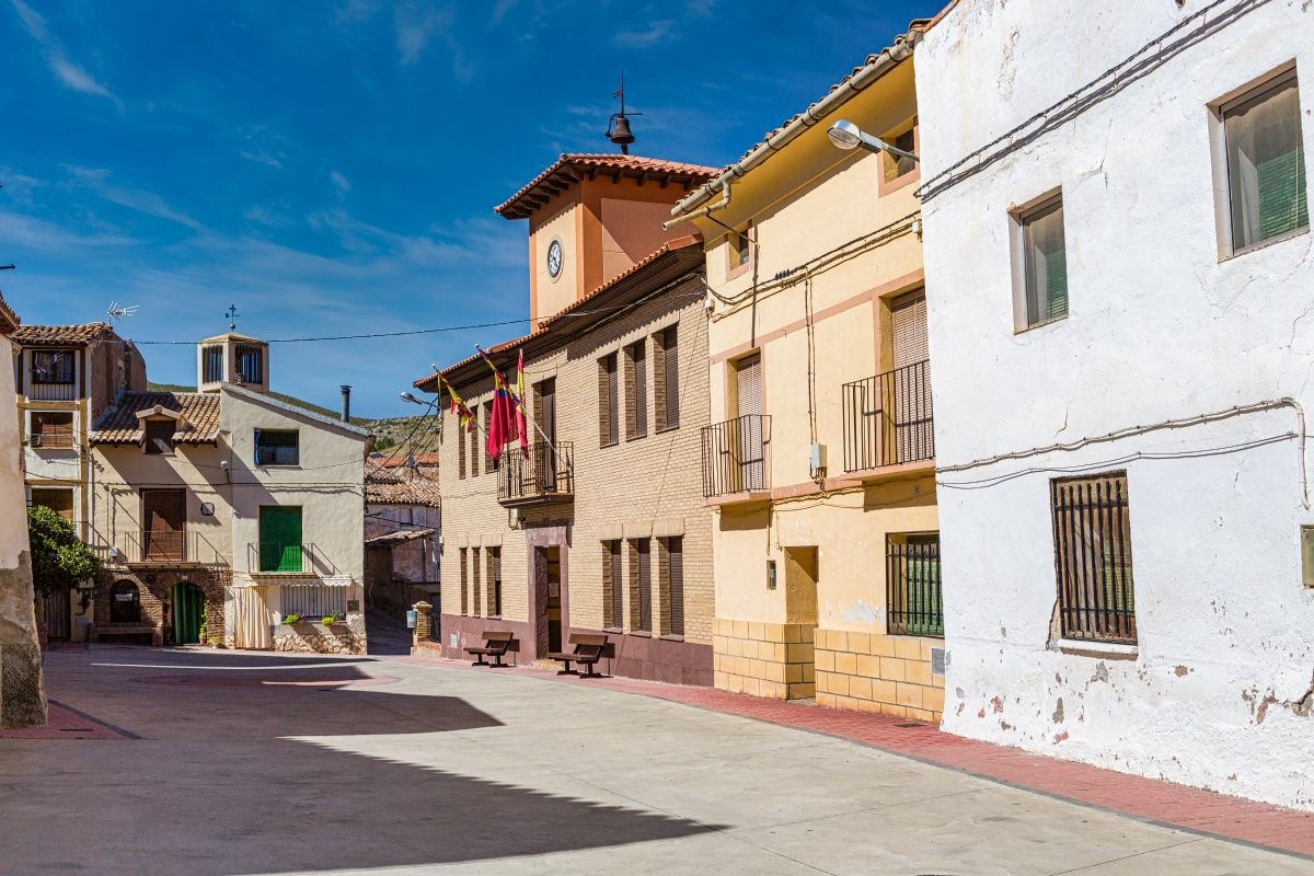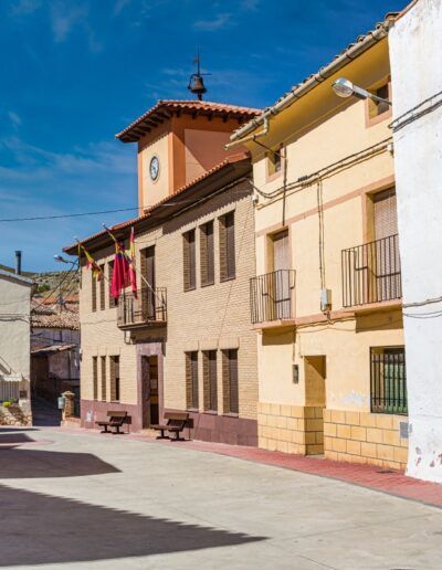 El conjunto debió de estar fortificado y seguro que la fortaleza se hallaba en la zona que ahora ocupa el templo, ya que se conserva el nombre de la calle del Castillo. En la zona alta destaca la ermita de San Vicente y en la plaza, además de la Casa Consistorial, una placa recuerda dónde estuvo ubicada la antigua ermita del Carmen, hoy convertida en vivienda. Hay que seguir descendiendo, callejeando y bajando por travesías que pasan bajo pasadizos que comunican las casas de uno y otro extremo. Una arquitectura puramente mudéjar que se desata al llegar a la calle del Barrio Bajo, en la que en cuanto desaparecen las casas a nuestra izquierda contemplamos a nuestros pies la vega del Isuela. Hay que levantar la vista a nuestra derecha para contemplar las casas de la calle de arriba colgando asentadas sobre la roca del precipicio. Algunas de ellas cuentan con recios contrafuertes para sujetar la altura, que se muestra impresionante vista desde el río.