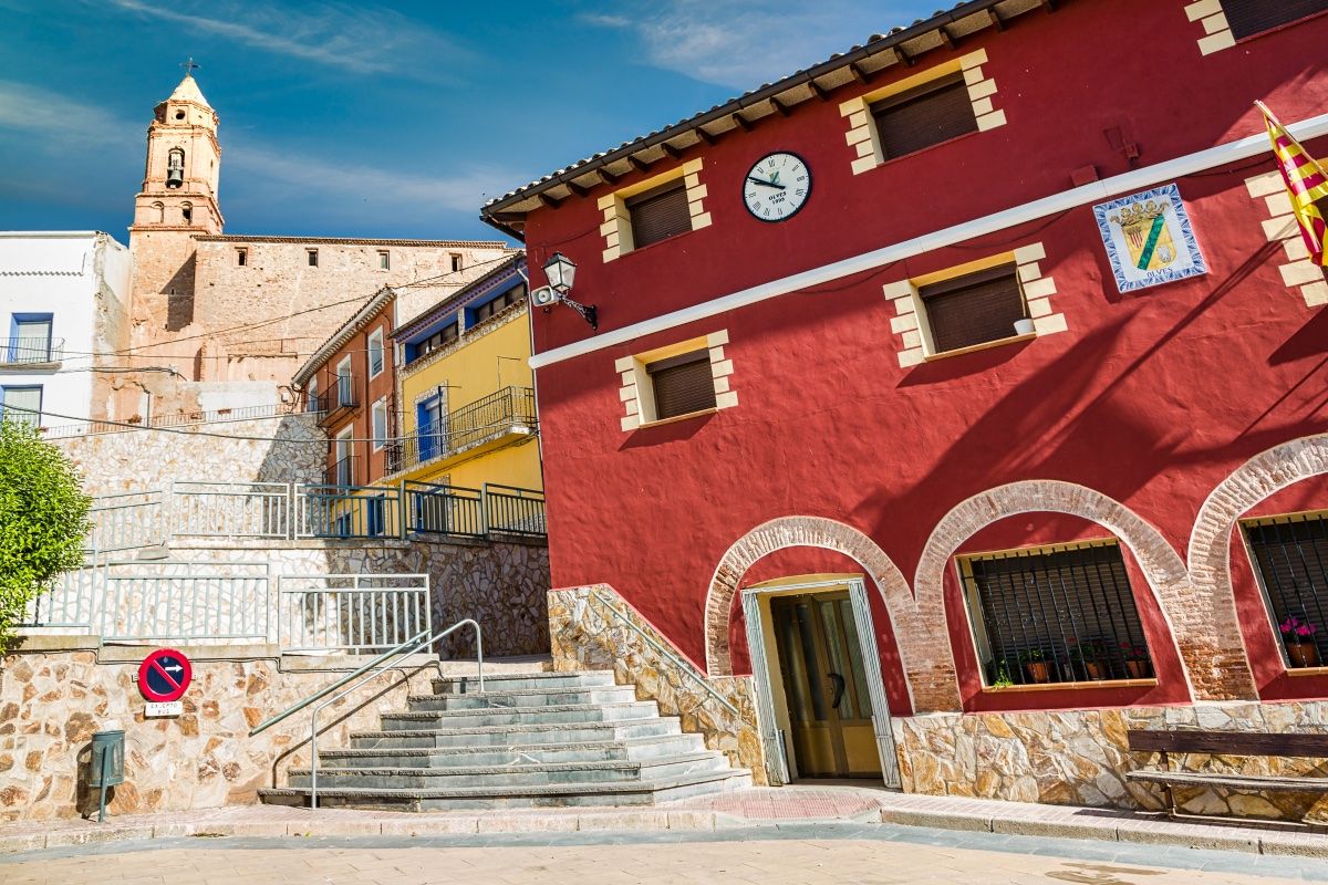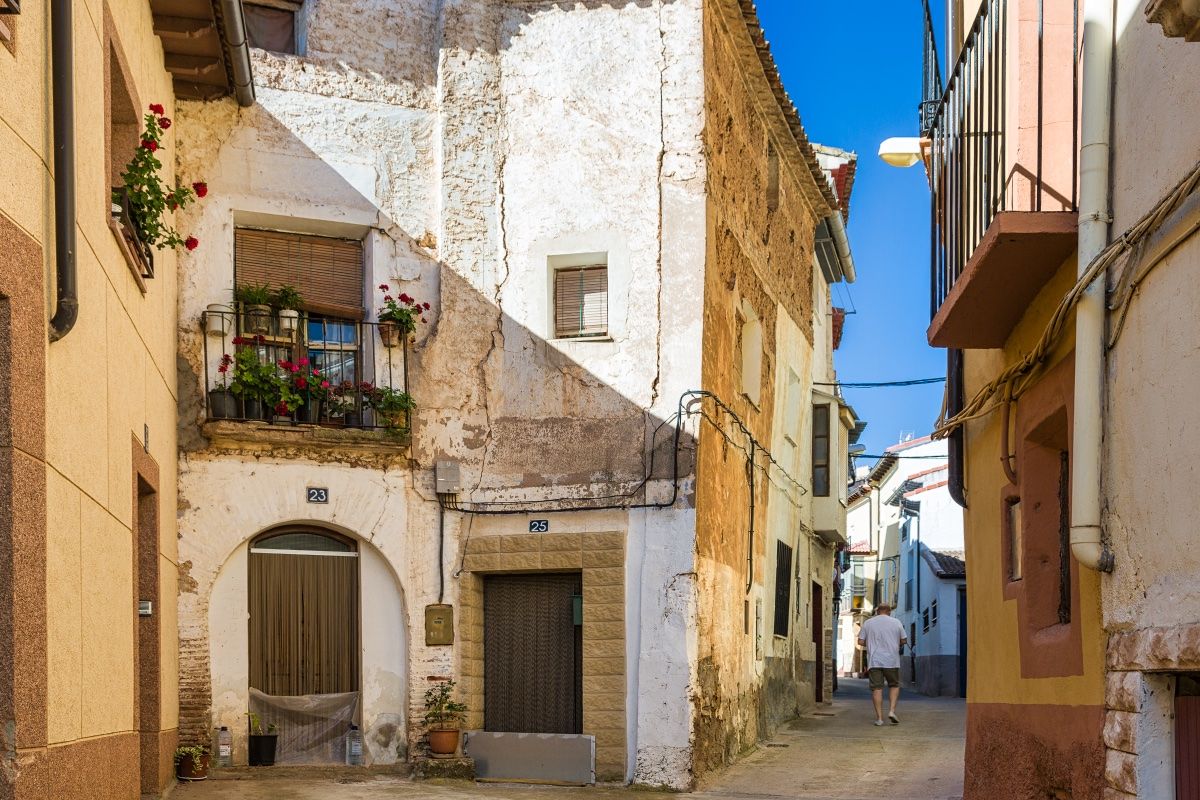 Desde Maluenda una carreterita nos lleva hasta Olvés, el pueblo donde muere la carretera. Son siete kilómetros que discurren entre frutales de todo tipo, melocotoneros, manzanos o perales. En lo alto del pueblo, sorprende la espectacular silueta de la iglesia de Santa María.
