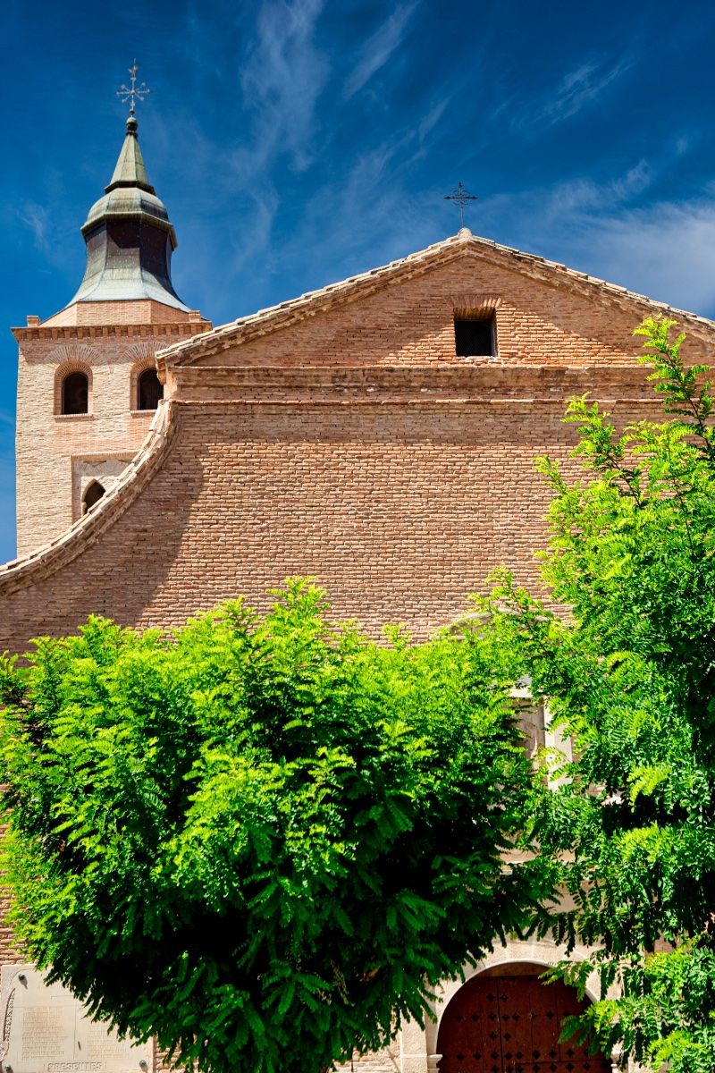 La construcción del templo data de los siglos XIV y XV pero el edificio fue profundamente transformado en época barroca. Del edificio original, de estilo mudéjar, tan solo se conservan la torre —datada en torno a 1400— y parte del  ábside poligonal. En el cuerpo levantado en la primera época se concentra toda la decoración, brindando un verdadero catálogo de los motivos en ladrillo resaltado usados en las obras mudéjares: frisos de esquinillas, arcos entrecruzados, rombos con cruces en su interior y lazos entre los que se alojan discos o platos de cerámica vidriada, que han hecho pensar en un posible mecenazgo por parte del Papa Benedicto XIII..